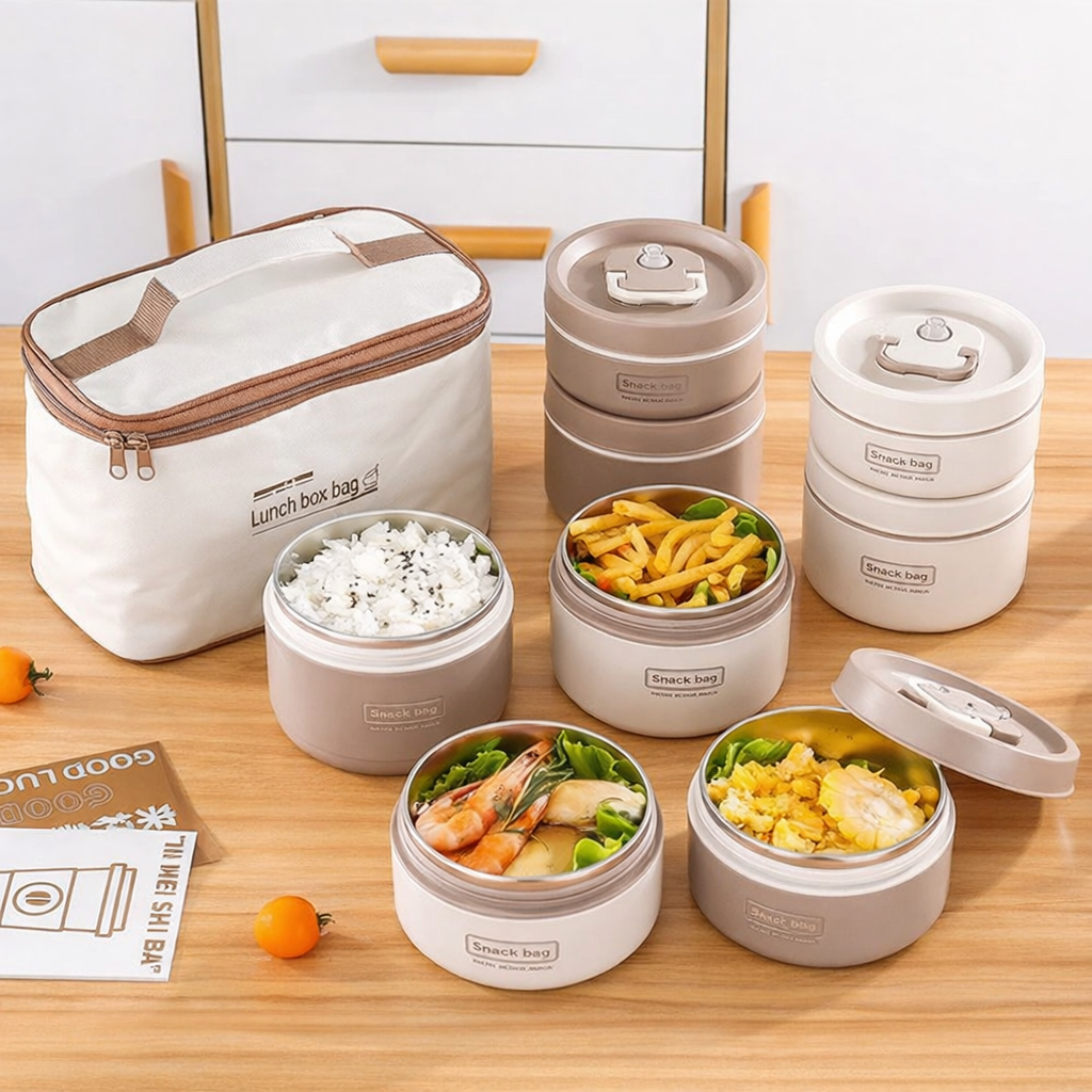 High Quality Insulated Round Bento Box 304 Ss Box Lunch Thermal Portable Microwaveable Loncheras With Bag